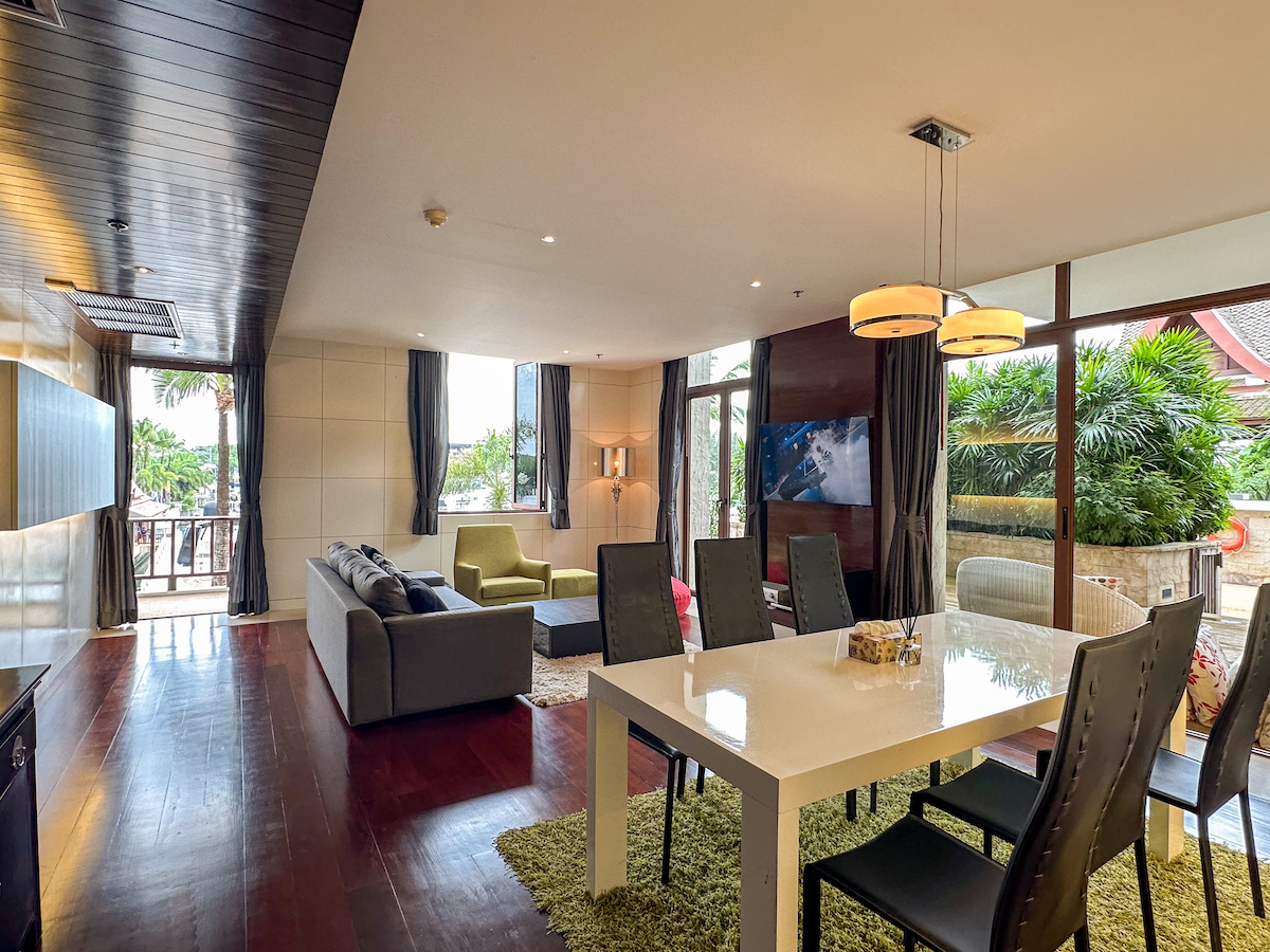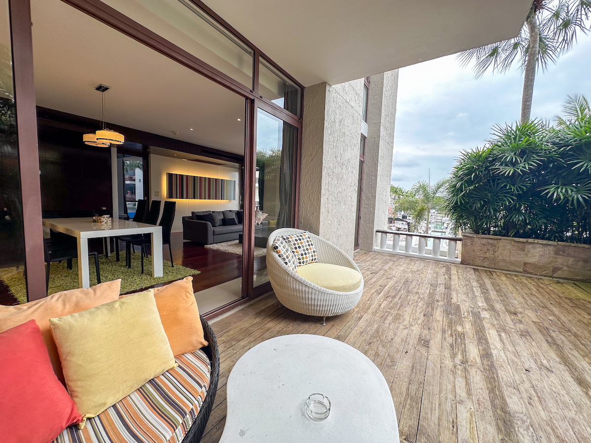 It enjoys marvellous views of the marina from the living room and one of the ensuite bedrooms, whilst the living room and the 2nd ensuite bedroom both overlook the private decks leading to the swimming pool.